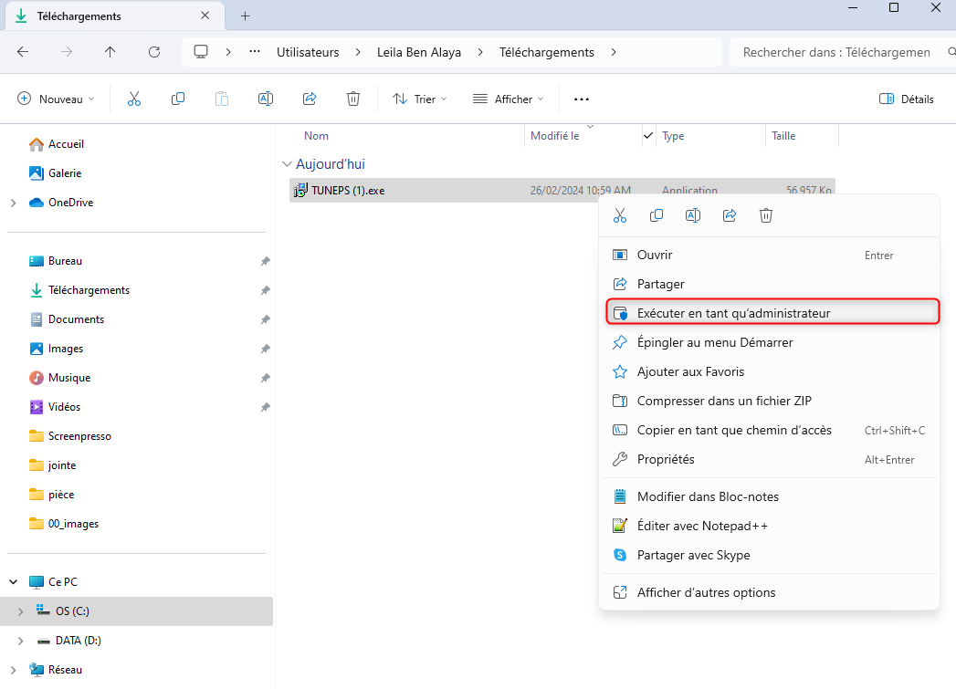 Exécuter l’utilitaire « TUNEPS Local Server » en tant qu’administrateur :