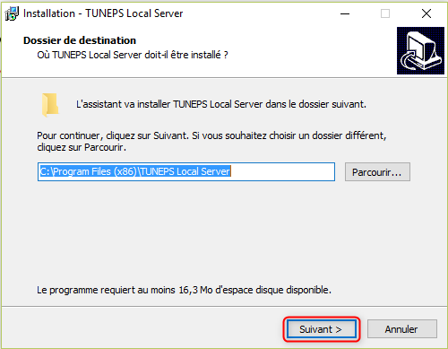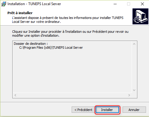 Etape 2 : Installation local server Tuneps