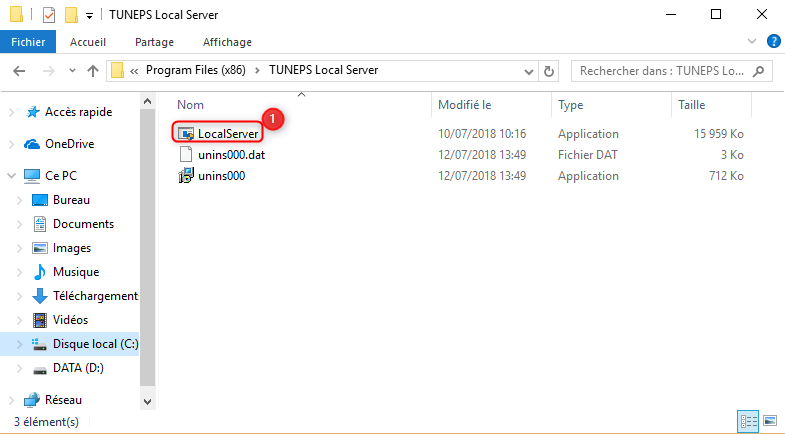 - 1. Exécuter le fichier « LocalServer.exe » qui existe sous le dossier