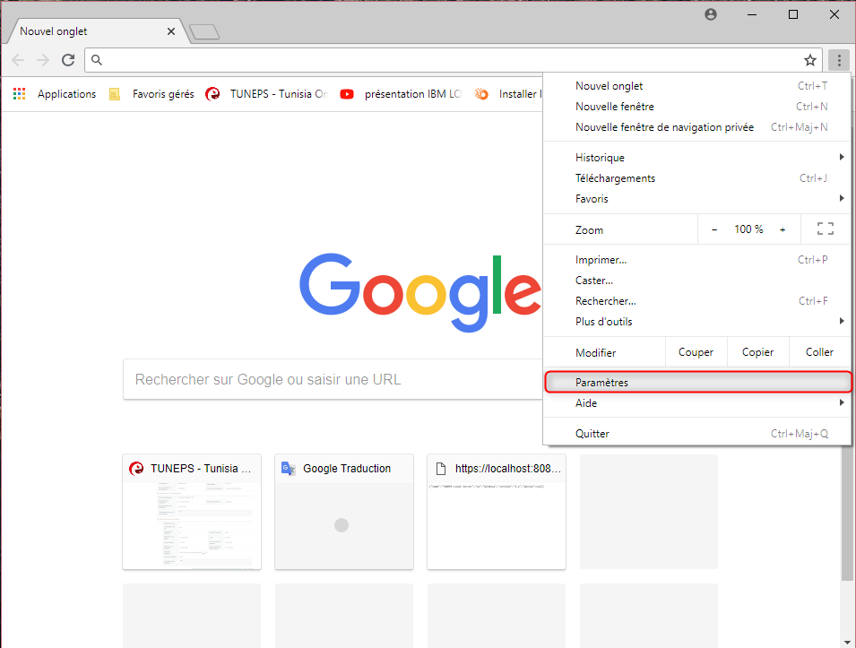 - Ouvrir une fenêtre Google et Cliquer sur « Paramètre »