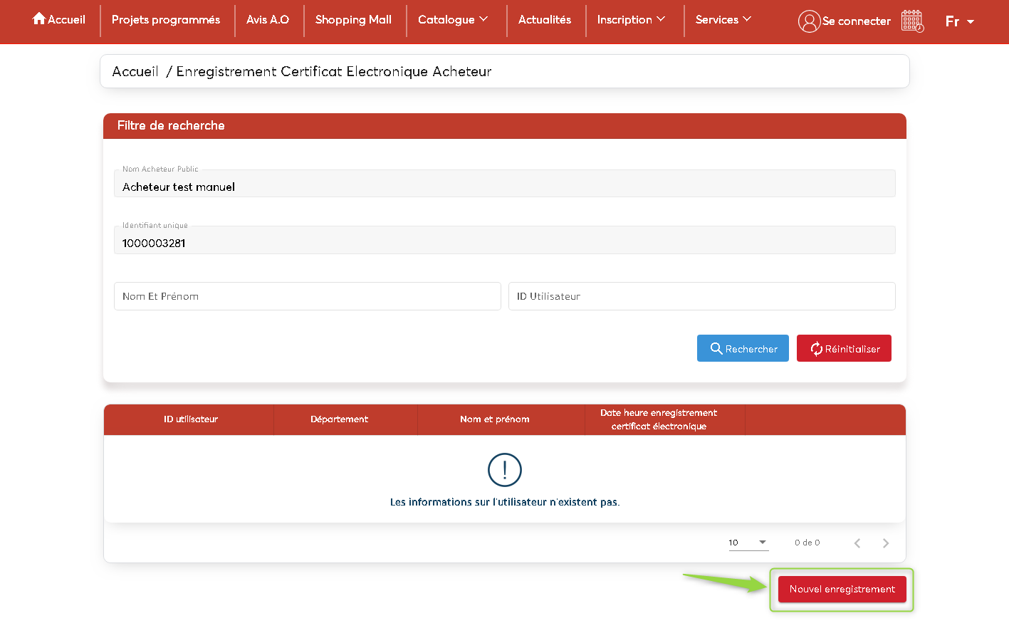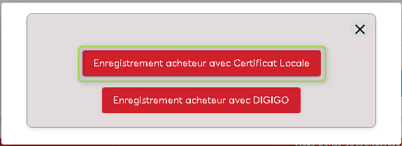 - Cliquer sur « Enregistrement Acheteur avec Certificat Local »