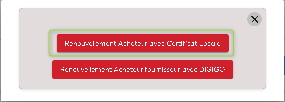 - Cliquer sur « Renouvèlement Acheteur avec Certificat Local ».